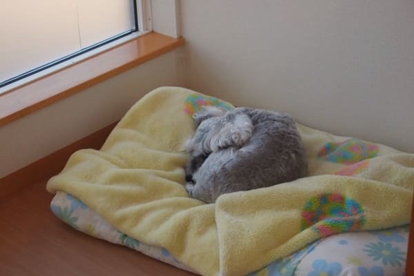 トロちゃんのカット中、ウニちゃんはしっかりと休憩して力を蓄え中。