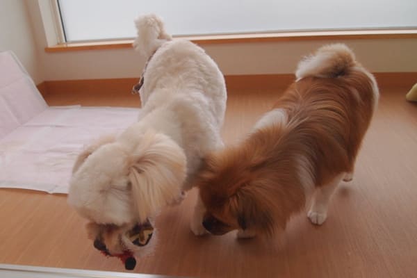 この2頭は本当に仲良しで、おもちゃで遊んでいてもケンカをしません。