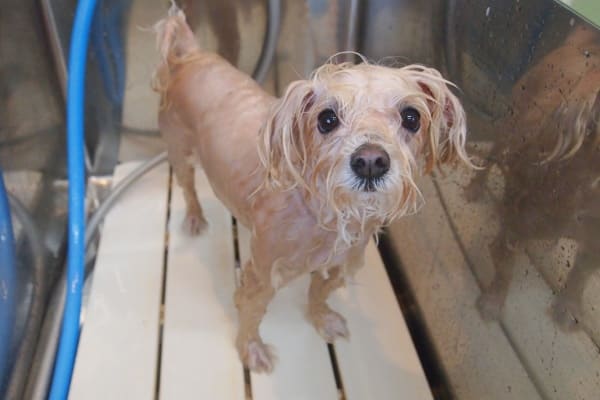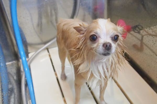 いつもは苦手な爪切りをしてからシャンプーに入っているのですが、今日はシャンプーからしてみました。