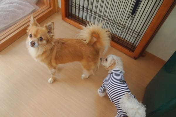 チワワミックスのしずくちゃん&ポメラニアンの茶々ちゃん