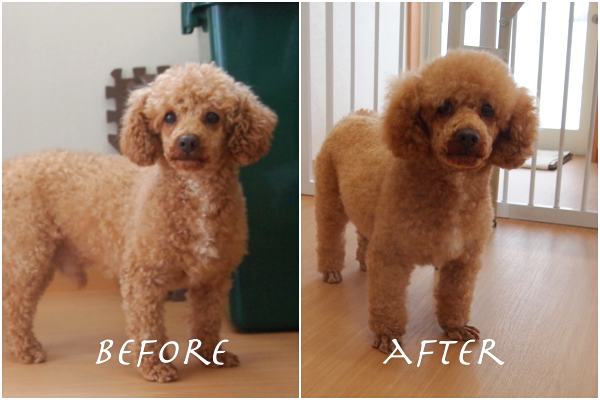 ゴンちゃん、来店時はそんなに伸びていないなぁと感じましたが、ブローをしたら毛が伸びました。