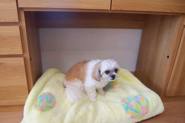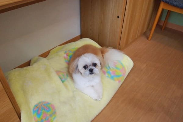 あられちゃん仕様に、毛布を机の下に入れてスタンバイ。