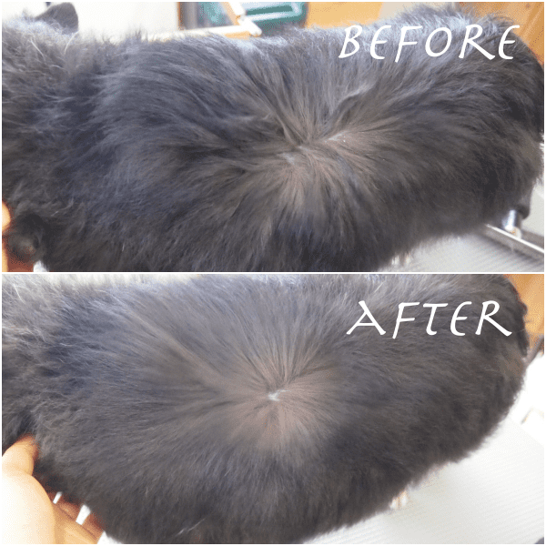 ステラちゃん、前まで抜け毛が全然なかったのに、今回はお尻だけごっそりと。