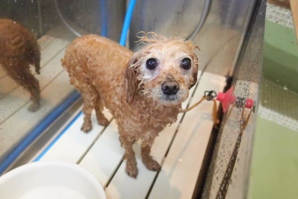 あんずちゃんからシャンプーです。