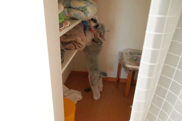 バックヤードでガサゴソやっていると思って覗くと、色んな物に興味津々。