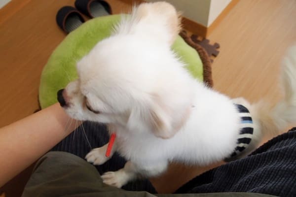 ノアちゃんは前脚が敏感で、ブラッシングは嫌がるはずなのになぁ。