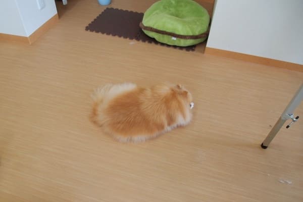 モコちゃんはいつも暑がりさんで、床の上で寝ることが多いです。