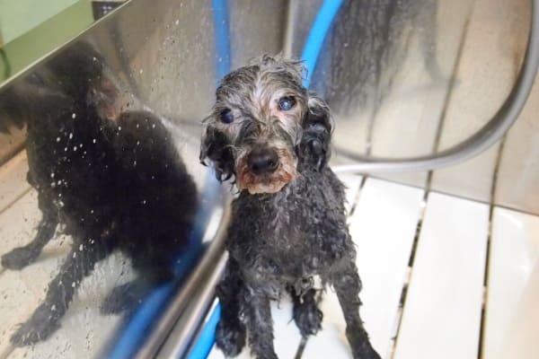 シャンプー中もずっと震えていたので、さっさと終わらせました。