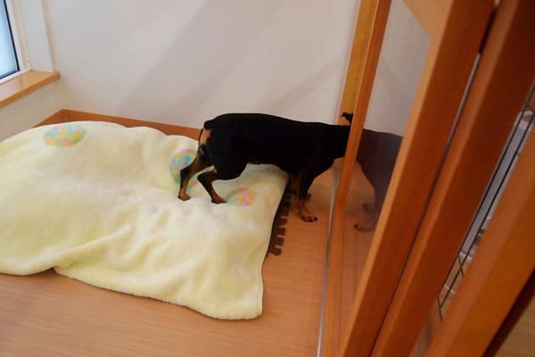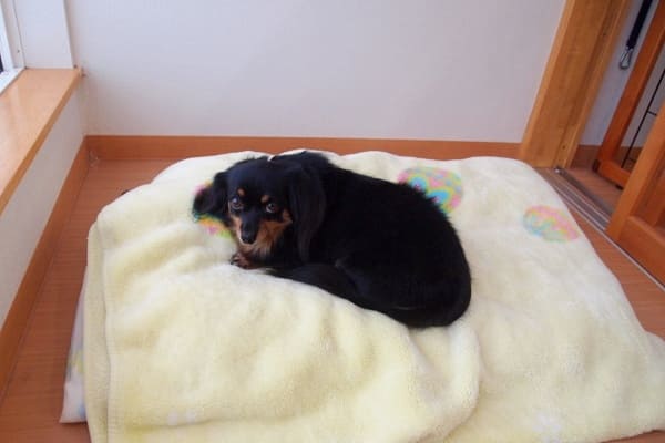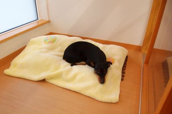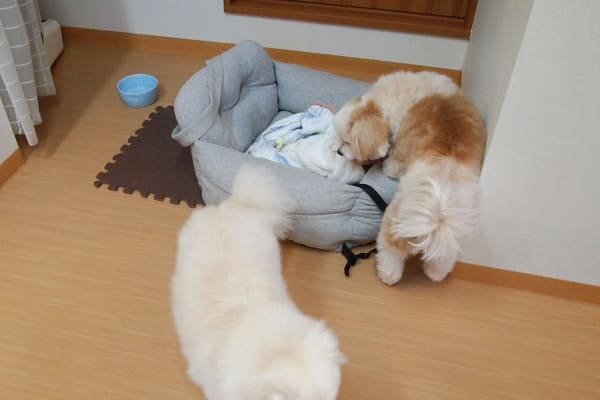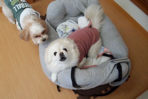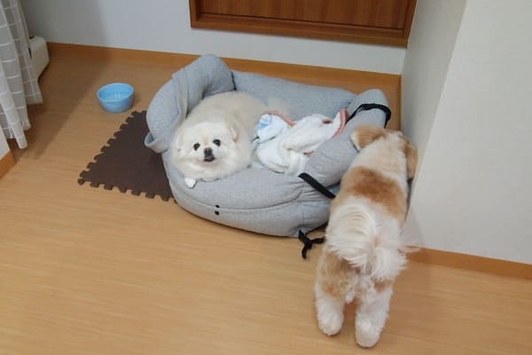 フウちゃんとモコちゃんのご持参ベッドなのですが、2頭一緒に入ることはありません。
