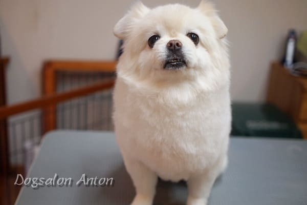今回はやたらと涙が多くて涙やけがひどかったので、目元は短くカット。