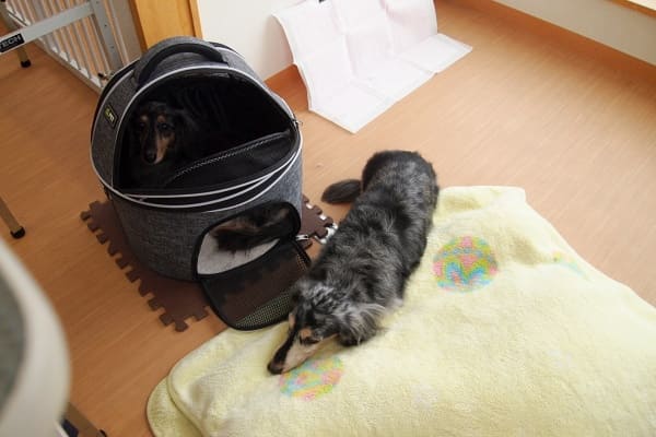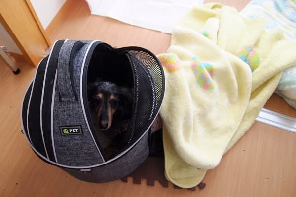 というのも、寒がると思ってマーブルちゃんのハウスをヒーターの前に持ってきたんです。