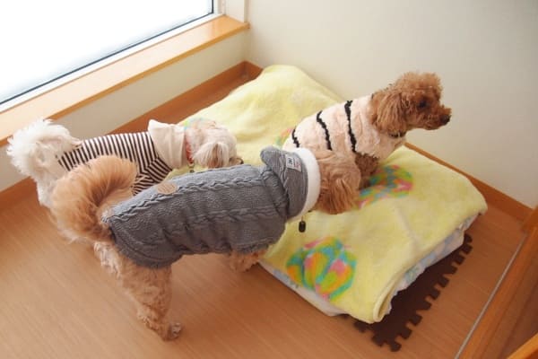 しばらくコニー&ミラと触れ合った後、毛布の上でまったり。