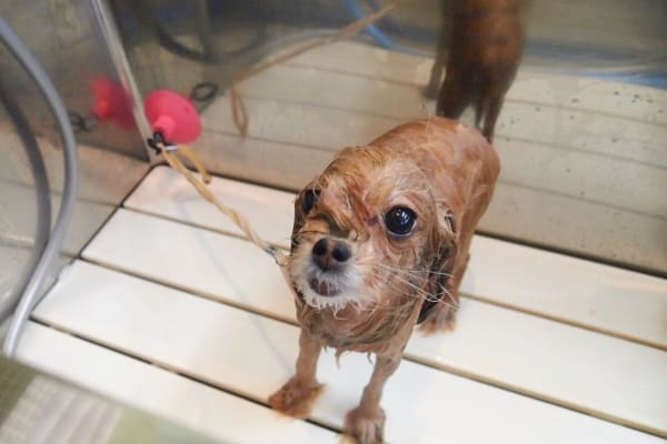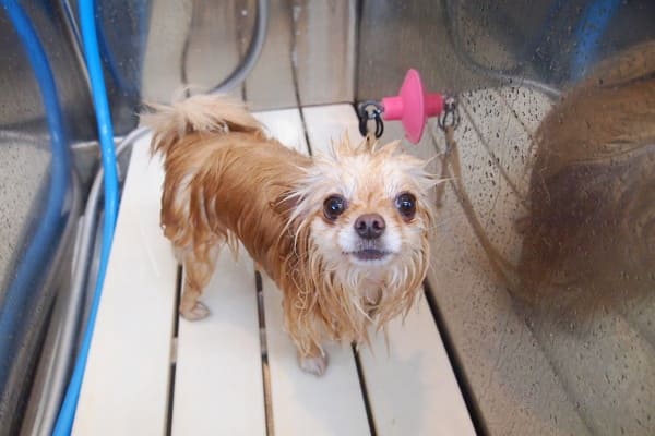 上の写真は「終わったから早く出して」と言っているだけで、シャンプー中はいい子でしたよ。