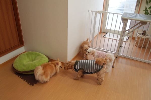 手前にコニー&ミラ、奥にティアラちゃん&シンバちゃん、そしてココちゃん。