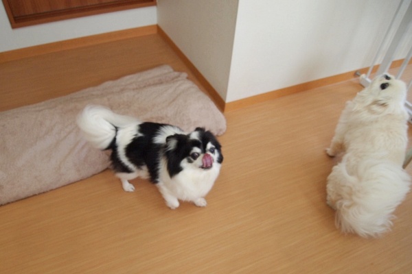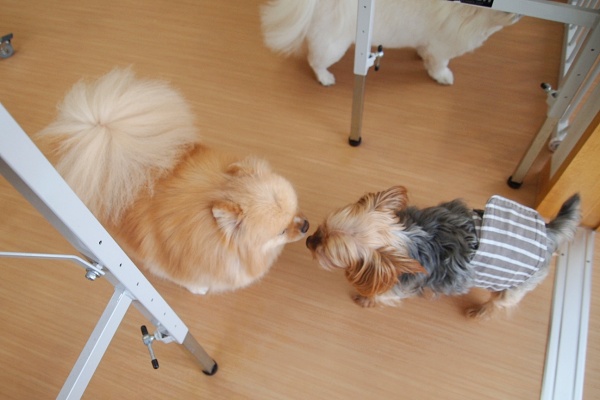 ちょっとモコちゃんとマルモちゃんがニオイを嗅ぎ合うだけ。