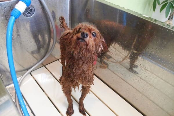 愛犬ミラは、最近毎日のようにおねしょをするので、お尻だけいつも洗われてます。