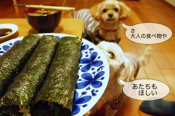 刺身と海苔買った方がたらふく食べられるんじゃね、ということで、刺身の盛り合わせを1,000円で買ってきてもらい、せっせと主人に作ってもらいました。