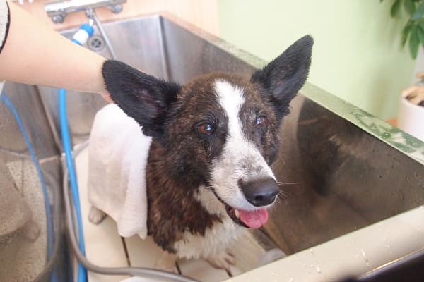 コーギーや柴犬の保水力ってすごくて、1ブルブルで相当飛び散ります。
