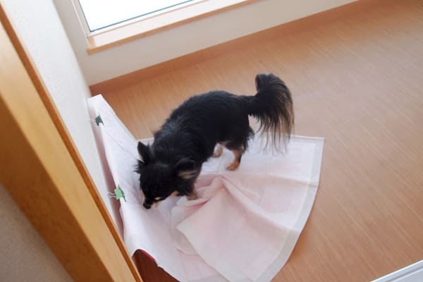 知らぬ間にトイレシートをぐちゃぐちゃにしていたティアラちゃん。
