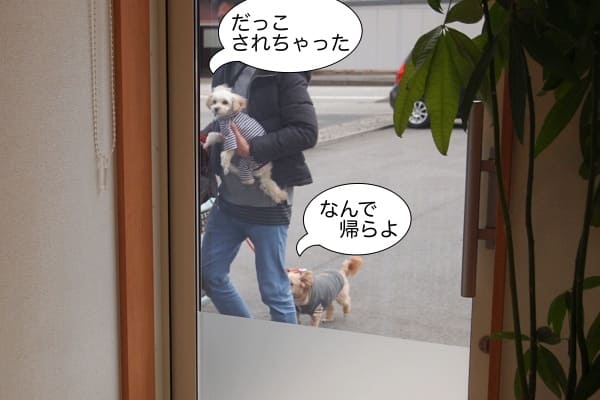 と思った矢先、ミラが抱っこされて帰ってきてしまいました。