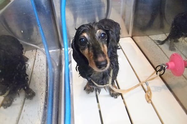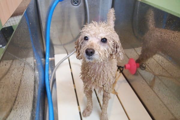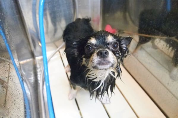 おやおや、マーブルちゃんがなぜか吠え始めてしまったので、マーブルちゃんからシャンプーしようかね。