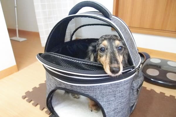せっかくハウスに入ったのに、上のファスナーを開けられて困惑するマーブルちゃん。