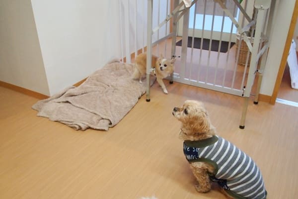爪切りの補助が必要なので、主人に来てもらいましたが、もれなく看板犬達もわらわらと。