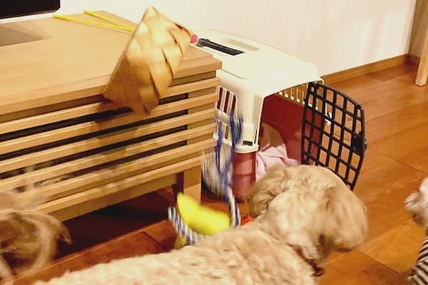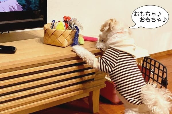 ミラがうちに来たばかりの頃は、テレビ台の上に乗ったおもちゃを取りたくても、
