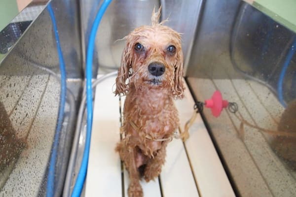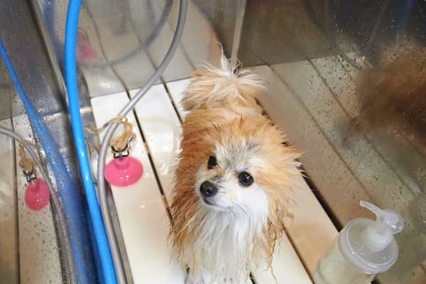 まろんちゃんは私の所に逃げてきたので、そのままシャンプーに入りました。