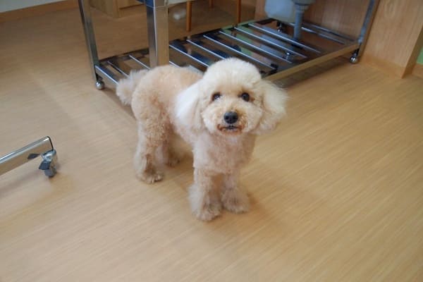 まろんちゃん、お家でブラッシングされているので毛玉知らず。