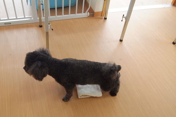 ブローが終わった後の休憩でようやくおしっこしてました。
