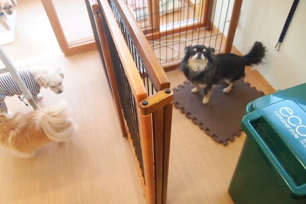いつもお母さんがおられるとキャンキャン鳴きますが、見えなくなると急に大人しく。