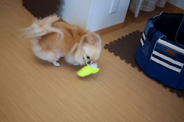 ティアラちゃんを乾かしている間、シンバちゃんは暇そうにしていたので、おもちゃをあげてみました。