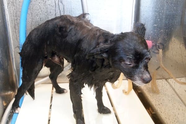目ヤニと涙焼けがひどかったので、切りながらシャンプーしました。