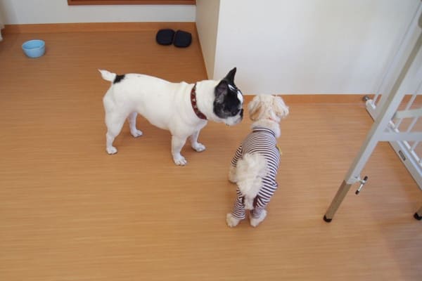 はなちゃんは特にその声を気にすることなく、2頭でニオイを嗅ぎ合っていましたよ。