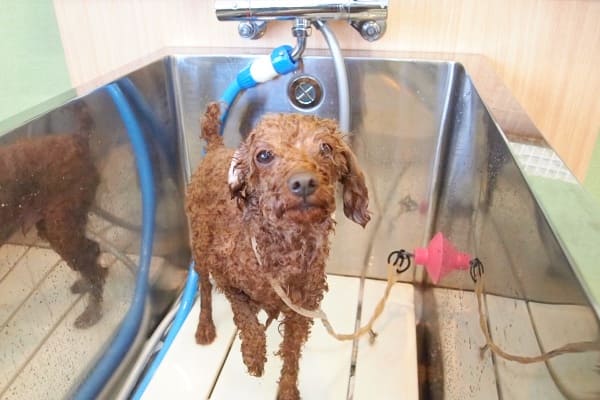 ちょっと休んでからシャンプーしようね。