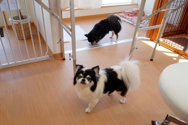 あいちゃんは、ベリーちゃんが気になるみたいですが、ベリーちゃんはマイペースにうろうろ。