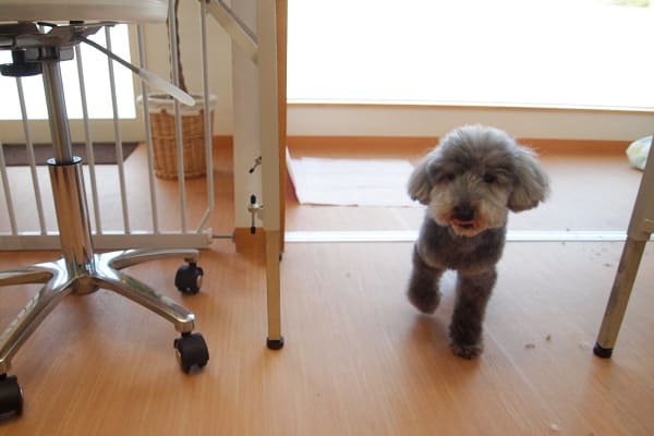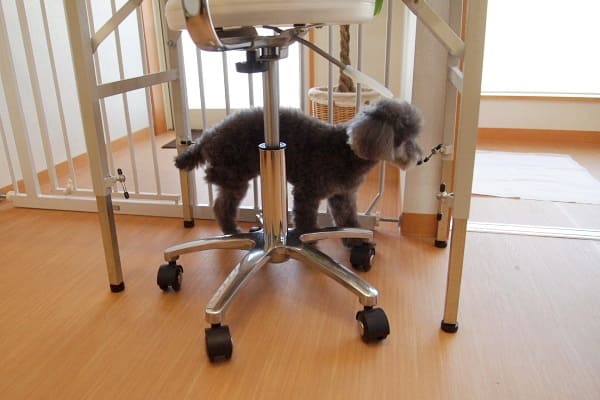 ベリーちゃんの通りたいルートに椅子の脚があったのですが、遠回りすることなく、椅子の脚の合間を縫って歩いていました。