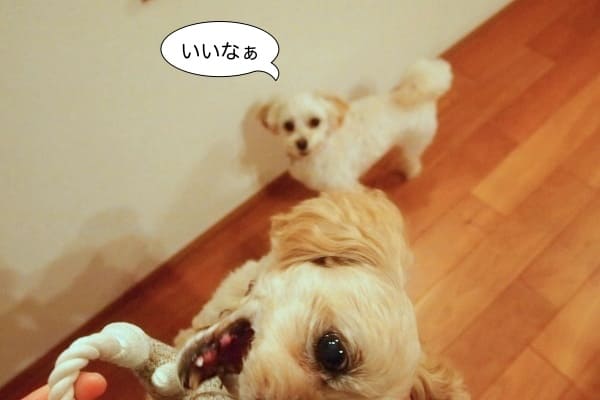 しばらくすると、飽きてその辺に転がっていた新しいおもちゃでした。