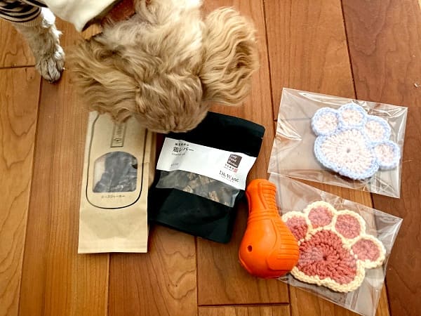 おやつと、アクリルたわしと、知育おもちゃ(?)を。