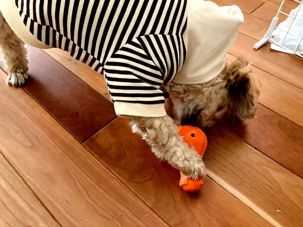 転がさないと中身が出てこないのに、ひたすらおやつの出てくる穴を攻めてました。