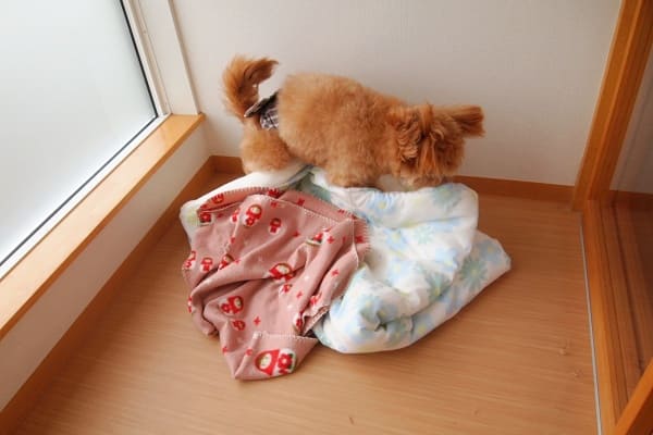 激しく布団と格闘中のコットちゃん。