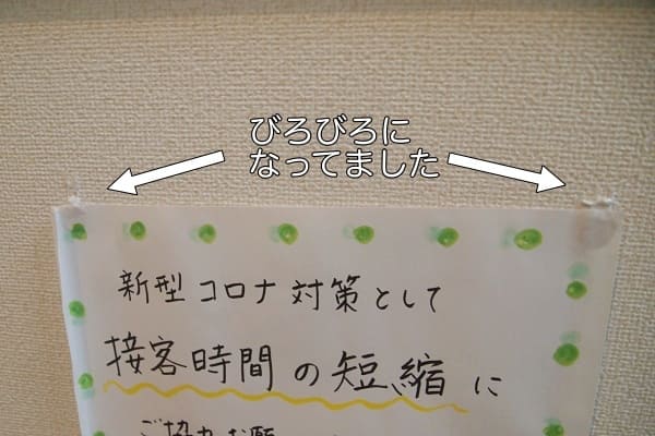 お店の壁にあまり穴を開けたくないので、掲示物はこれを使っています。