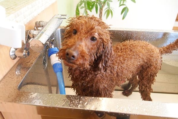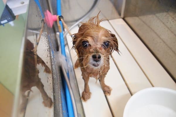 お顔にお湯が掛かるのが苦手なココアちゃん。