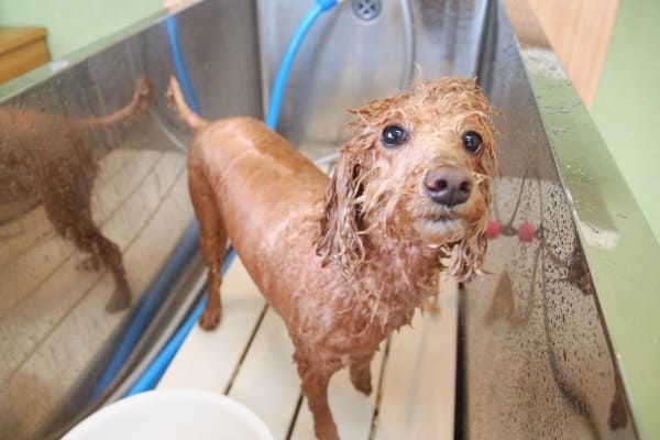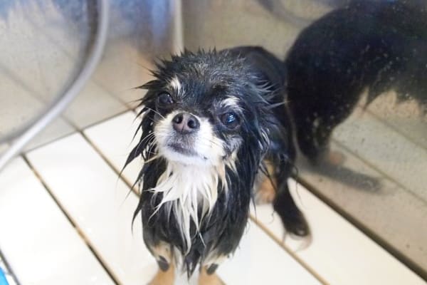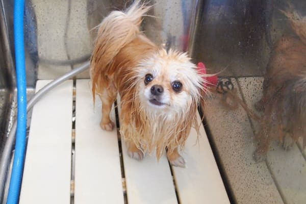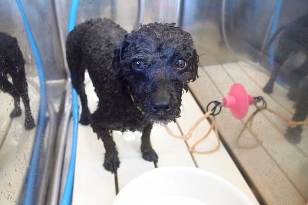 初回は大抵の方にはシャンプーの見学をお願いしていましたが、アレンちゃんはお母さんがいる時の興奮がすごいのですぐにお預かりしてました。
