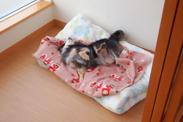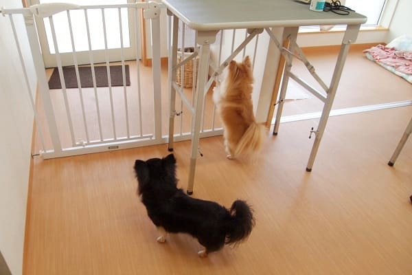 お母さんがいる間はキャンキャン鳴いていますが、見えなくなるととてもお利口さん。