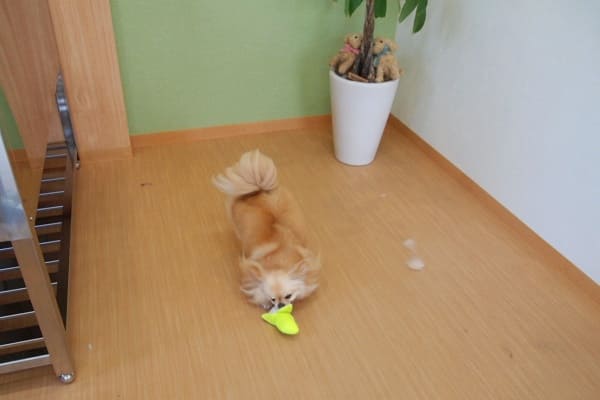 前に飼っていたパピヨンの男の子は、足を上げまくってマーキングしまくりだったので、この差にビックリです。