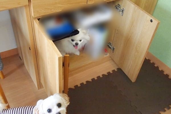 ブローが終わるまで、ソラちゃんはずっと棚の中から出てきませんでした。