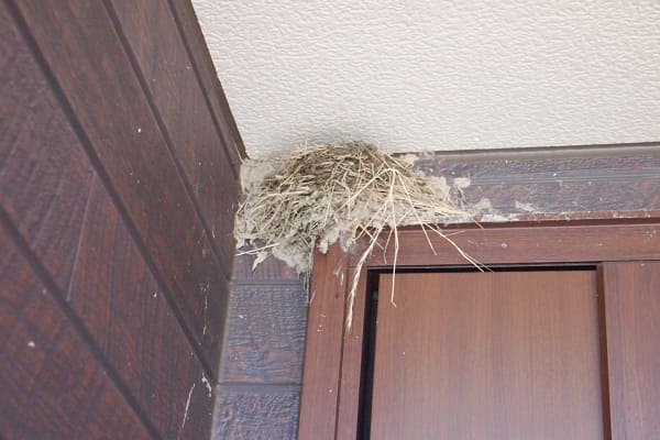 ツバメの巣が完成!1本1本草を運んで作ったみたいです