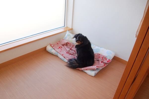 座布団も布団も用意してあるけど、床の上にいる方が長かった気がします。
